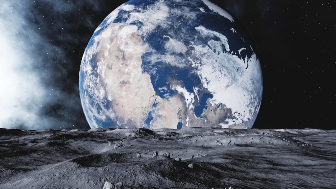 架空の月面風景。アングルによって地球を映り込ませることができます。