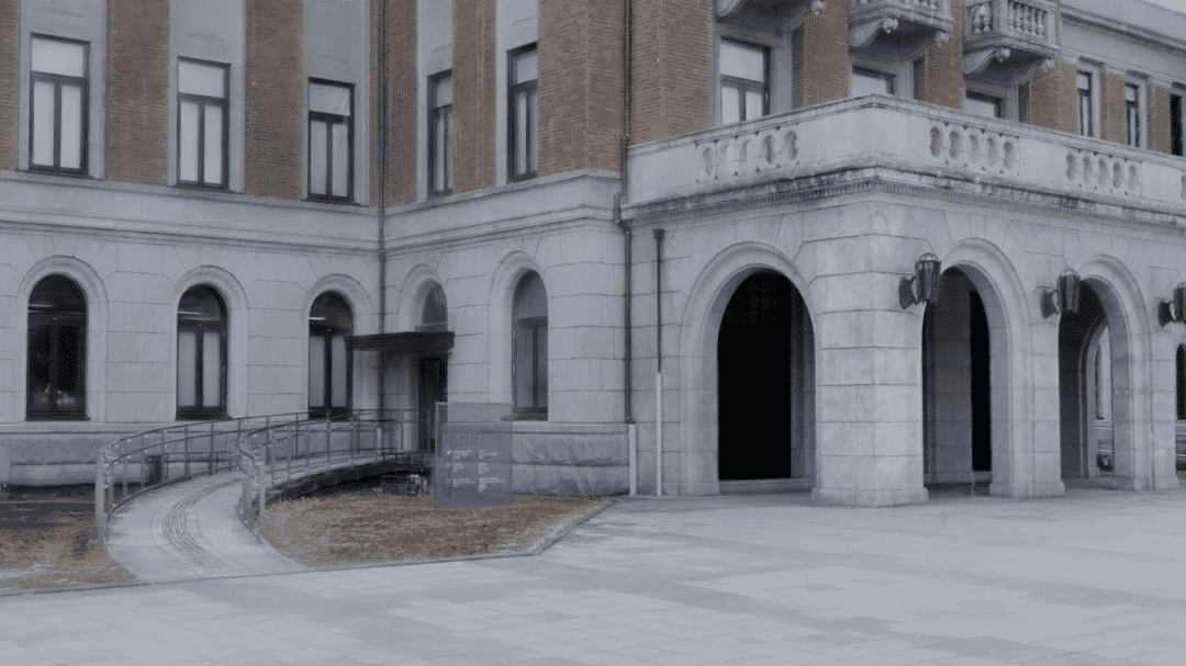 群馬県庁昭和庁舎外の空間をスキャンしたデータを元に作成しました。