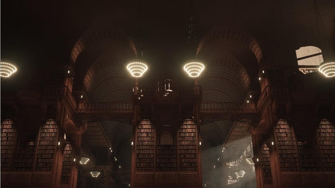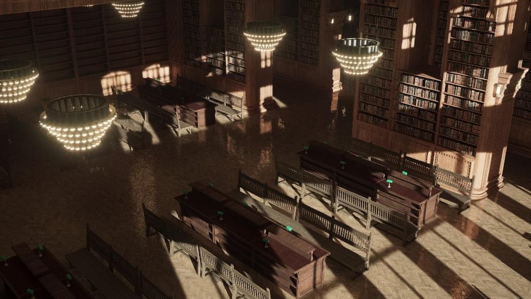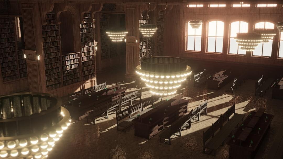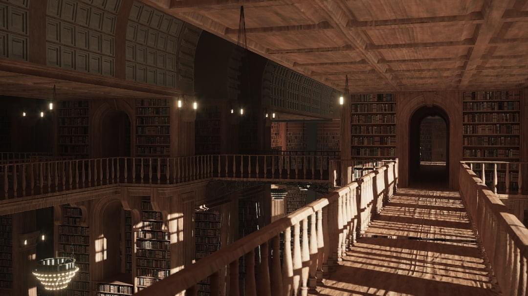 海外にある閑静な大型の図書館をイメージして作成しています。