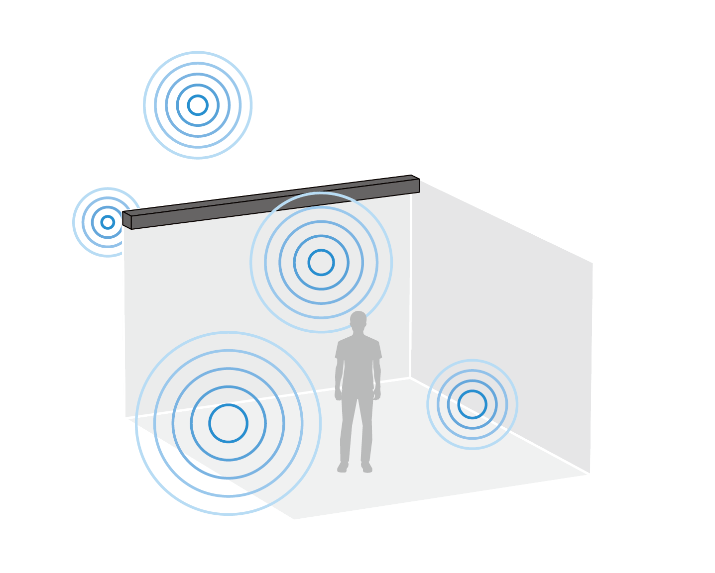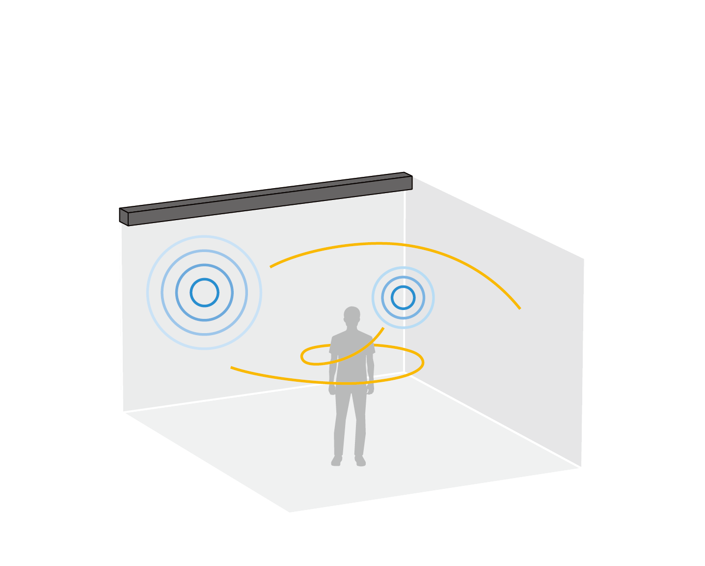 ソニーの波面合成技術によって制御された新規開発マルチチャンネルピーカーと専用ソフトウェアを組み合わせ、空間内の音をコントロールし、新しい音の体験を提供することができます。