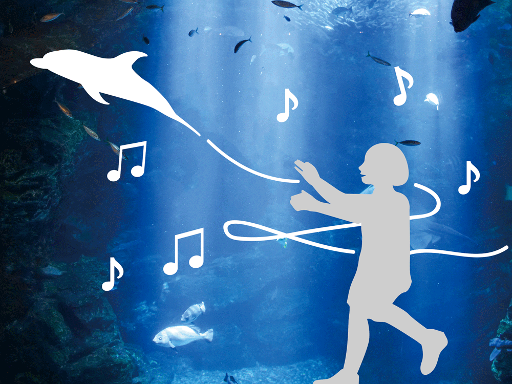 スピーカーから音が飛び出し、耳元に定位したり、すり抜けたりしていきます。例えば、波の音や泡のはじける音、イルカの鳴声などを空間上で自在に動かし、あたかも海の中にいるかのような仮想体験を創り出します。アトラクションや水族館、体験型施設など、没入感の高い空間づくりが必要な場所に最適です。