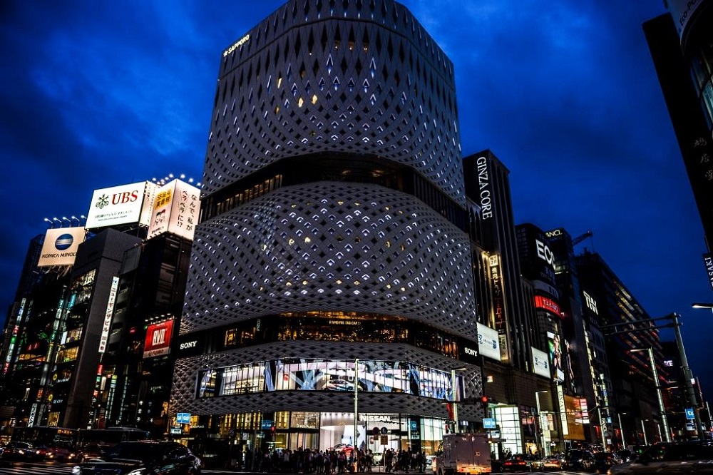この場所に、ソニーPCLはLEDを組み込んだ大型透明ディスプレイを使用したスペース演出を提案。様々な映像を映し出す「G-SMATT GLASS」を同2階ガラス面に設置された「バーチャルファサード」へ導入するための企画とサポートを行なった。ショールーム2Fの窓際に透明ディスプレイを設置することで、昼夜問わず光の演出が可能となり、スタイリッシュなテクスチャデザインや時刻・ロゴ等のテキスト情報を映し出し、銀座四丁目交差点にて人目を引いている。