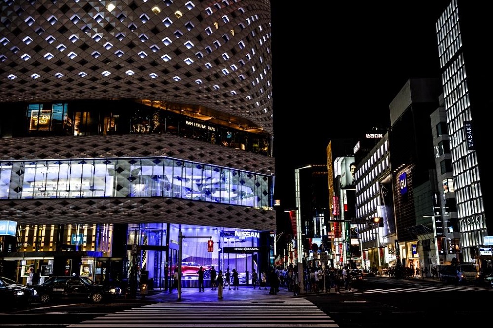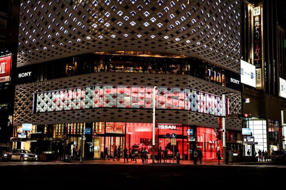 「NISSAN CROSSING」は、「今までなかったワクワクを。」という日産のブランド価値をお客様に発信していく拠点として、先進性を表現する多様な最先端技術へのチャレンジを行っています。中でも建物2階の窓面に設置した「バーチャルファサード」は、アイキャッチ効果が高く、銀座四丁目の交差点を行きかう人々に「NISSAN CROSSING」の存在を直感的に訴える重要なタッチポイントとなっています。