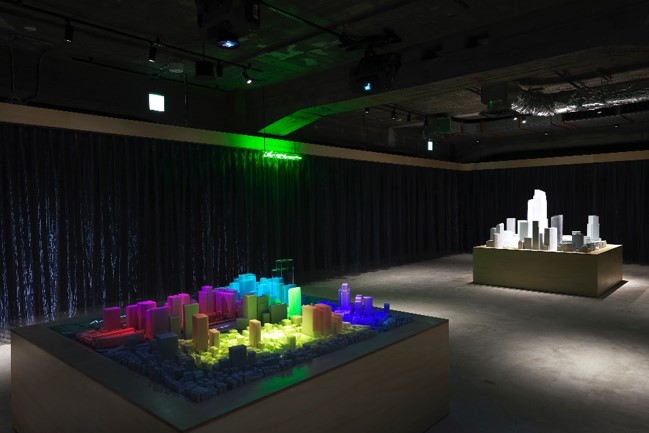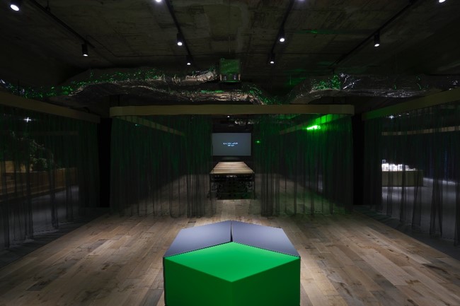 ソニーPCLは、「既存の価値観の境界を“ぼかす”ことにより、新しい価値を生みだす」という観点から、施設のコンセプトを「Blurred Boundaries(曖昧な境界)」と定め、内装のデザインを実施。日本ビルヂングのポテンシャルを最大限に活かすために、新たな素材で内装を覆うのではなく、“解体をデザインする”という考えのもと、新旧の融合を目指した。また、本スペースでは都市模型への3Dプロジェクションマッピングを使用し、来場者に向けた、東京駅前常盤橋プロジェクトに対する期待感を醸成させる演出も行なっている。