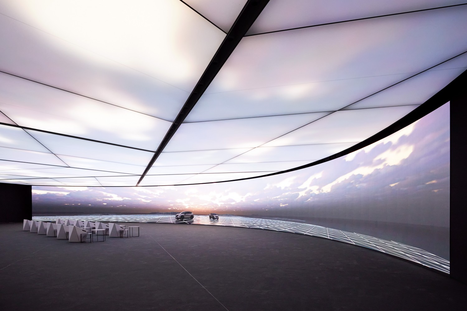 その中枢であるグローバルデザインセンターに、最大となる「デザインプレゼンテーションホール」が新設された。ホールには湾曲した横幅43mの27K大型Crystal LEDスクリーン(24K解像度のソースをアップスケールして表示)に加え、白色及びフルカラー天井LEDスクリーン、リモート照明、7.1ch音響システムを備えている。
